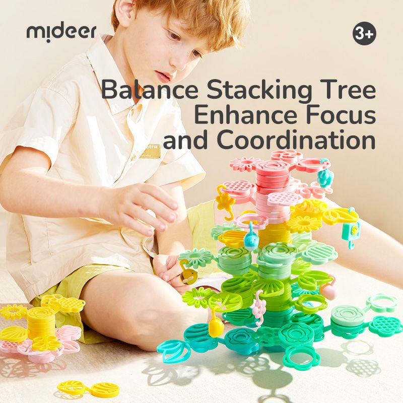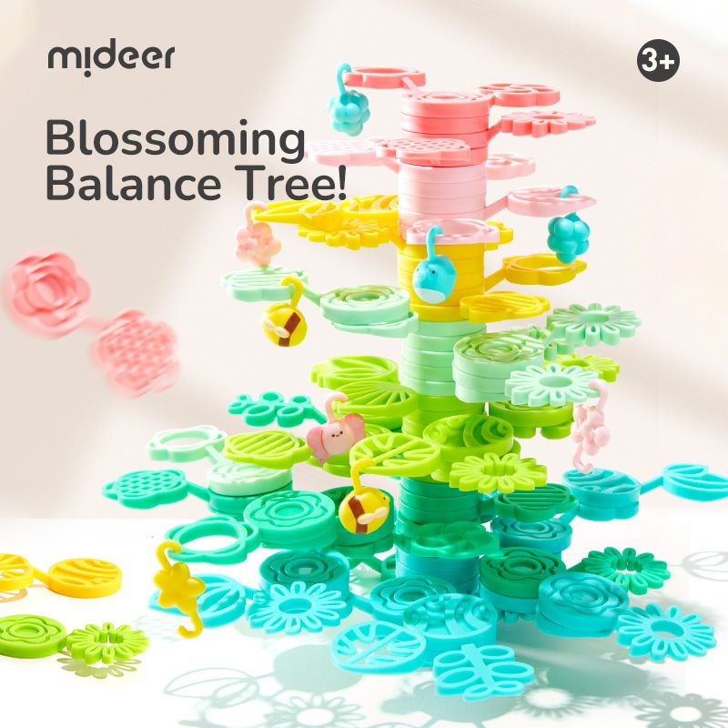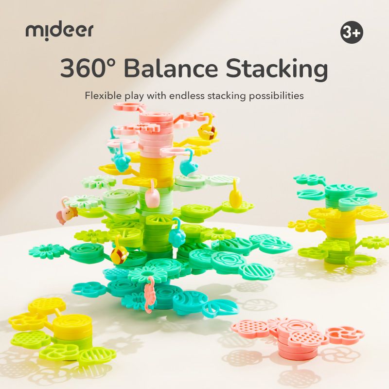 Mideer Magischer Baum des Gleichgewichts ist ein farbenfroher Satz stapelbarer Teile in Form von Blättern und Zweigen, aus denen Kinder ihren eigenen Traumbaum bauen können – hoch, verzweigt oder ganz fantasievoll.