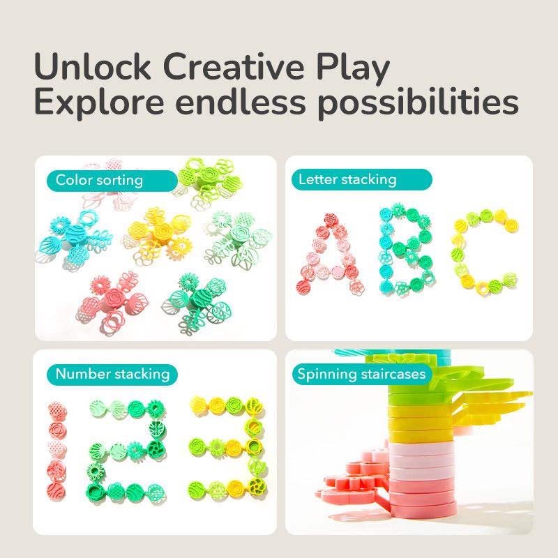 🤲 Förderung der Feinmotorik und Konzentration – durch präzises Zusammenstecken und Balancieren der Teile.
