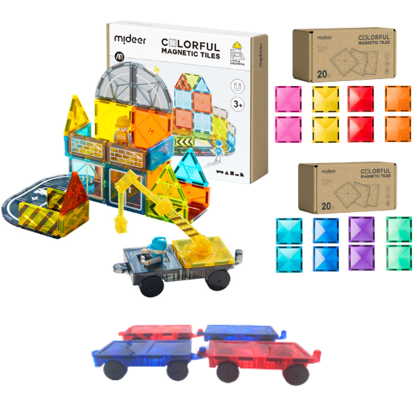Dieses Set mit 4 Autofahrgestellen ist die perfekte Erweiterung für bestehende MiDeer Magnetbausätze.